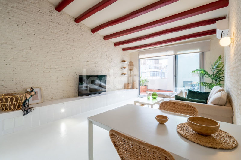 Painted white, filled with light and newly renovated, it has a little terrace that you will just love and where there’s more than enough space to sit and have breakfast, lunch and dinner beneath the Barcelona sky.