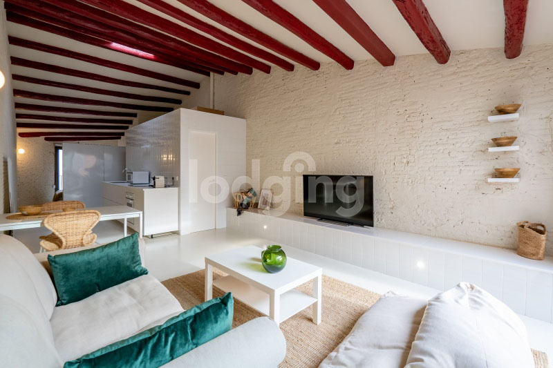 This welcoming apartment, with its brick walls and bare wooden beams, lies just off the Rambla.