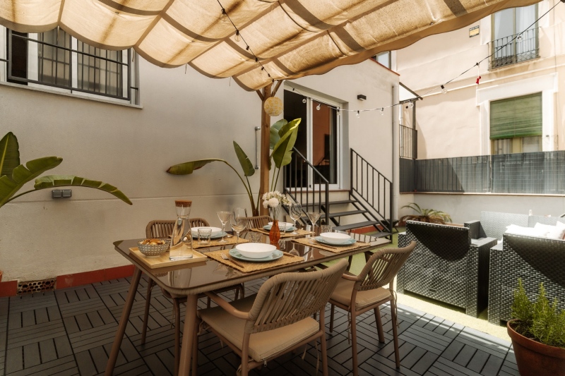 But the best: the exit to the spectacular terrace with its table to eat some tapas, and the chill out area to settle comfortably at any time of the day.