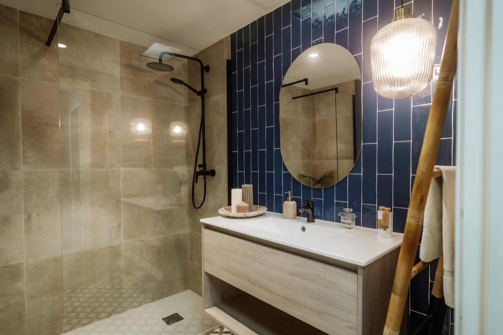 You have a room with a double bed bathed in light, a single room with a single bed and with a full bathroom.