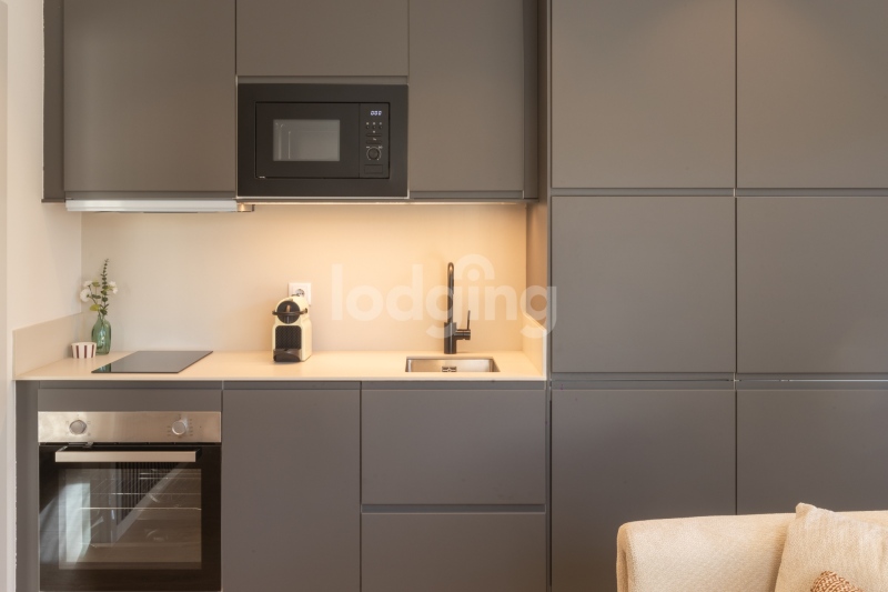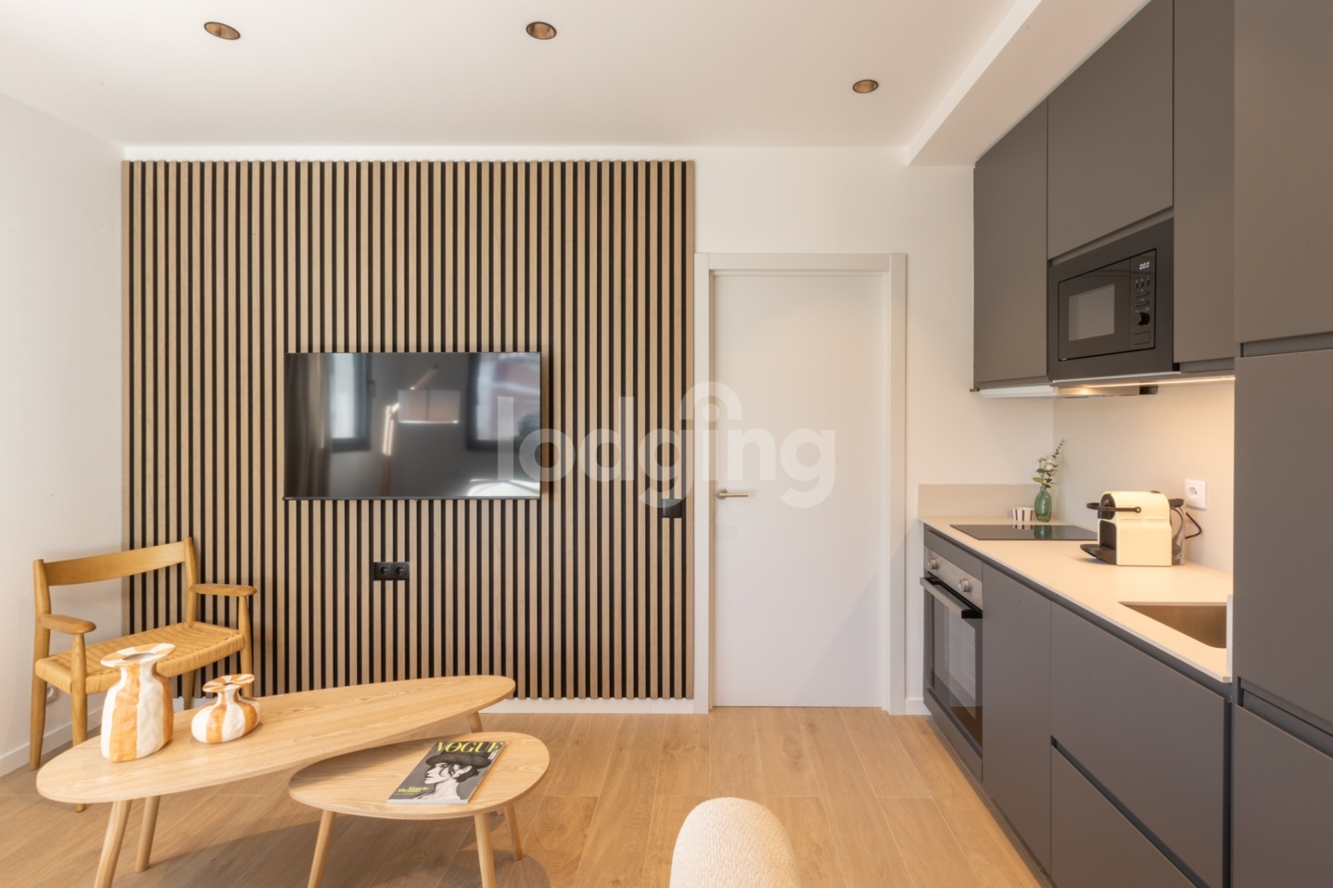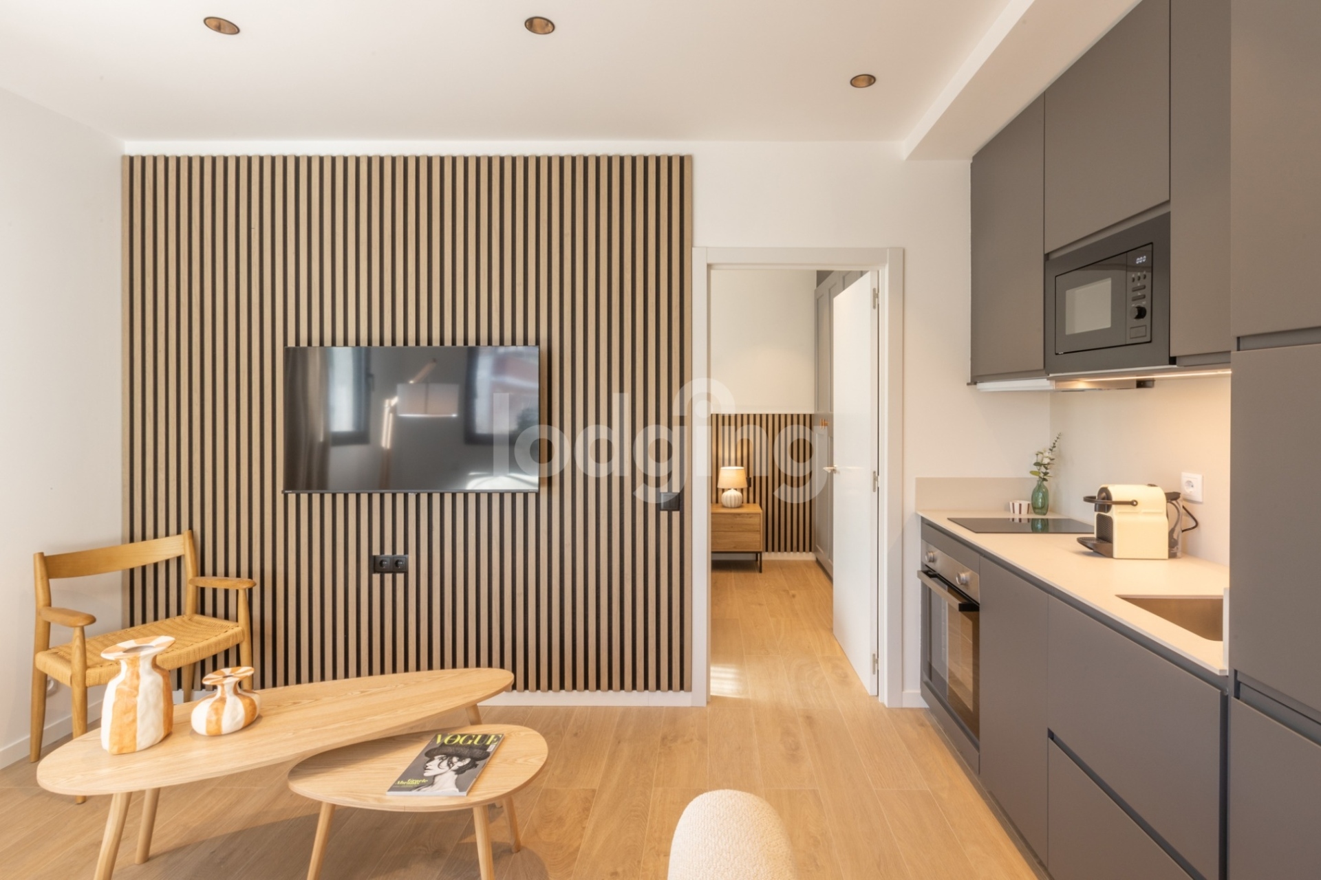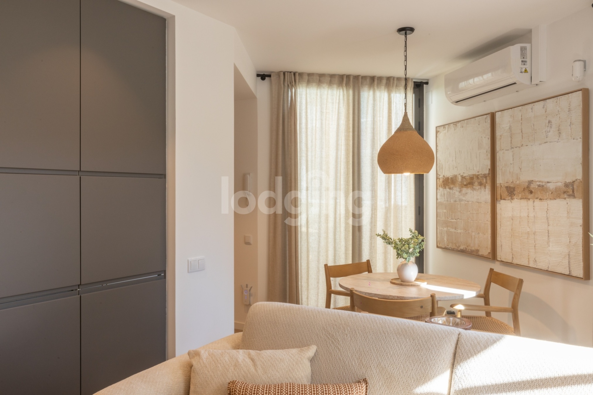 Entièrement rénové et prêt à être inauguré, ce logement se distingue par sa grande luminosité et son atmosphère chaleureuse, idéale pour les couples, les voyageurs d’affaires ou les courts séjours avec tout le confort nécessaire. L’espace principal comprend un salon-salle à manger lumineux avec une cuisine ouverte et entièrement équipée, offrant un cadre moderne et fonctionnel pour se détendre ou partager de bons moments.