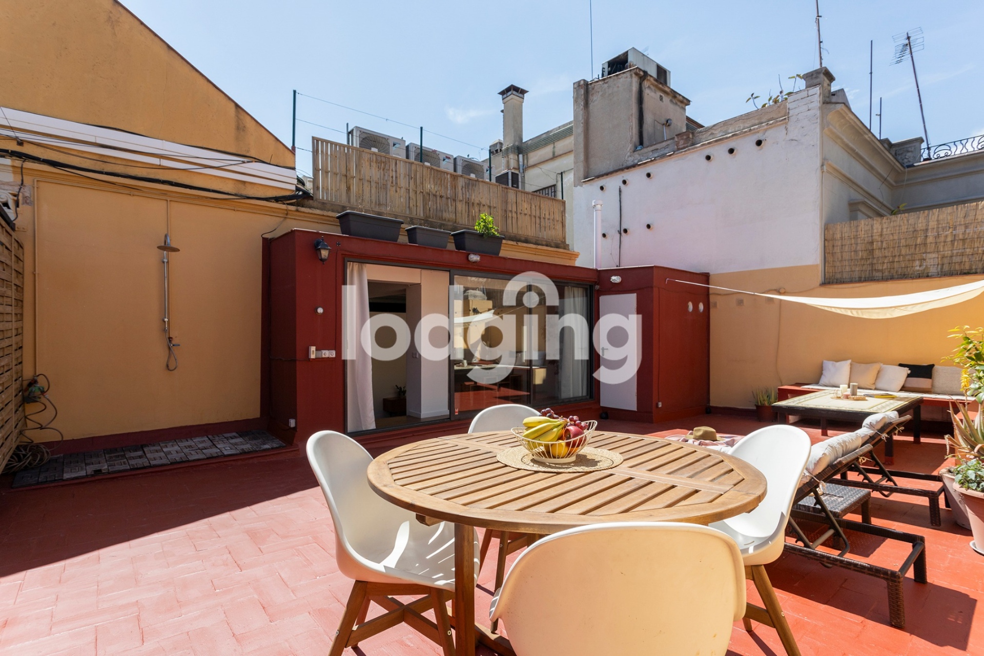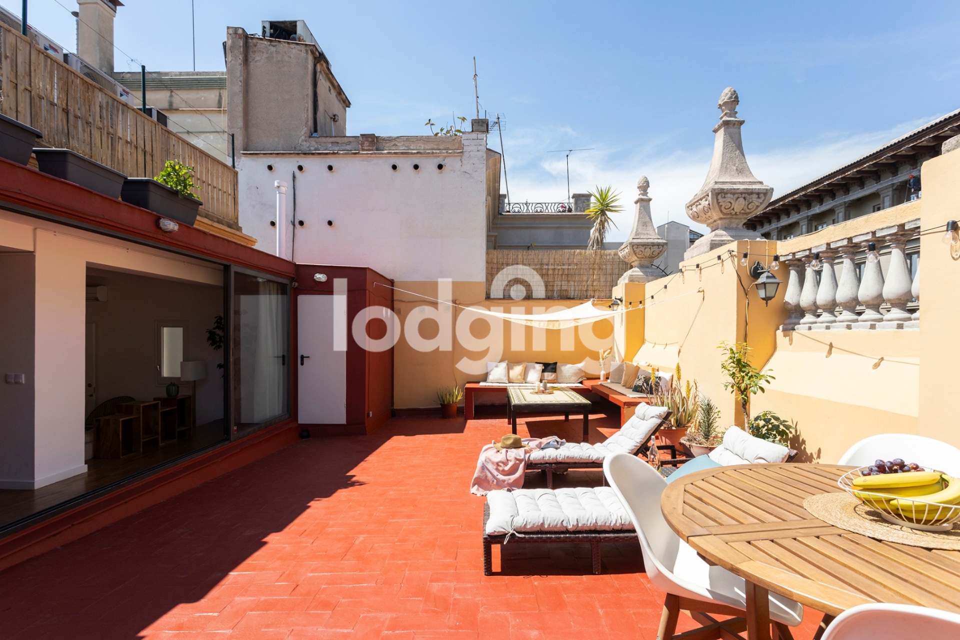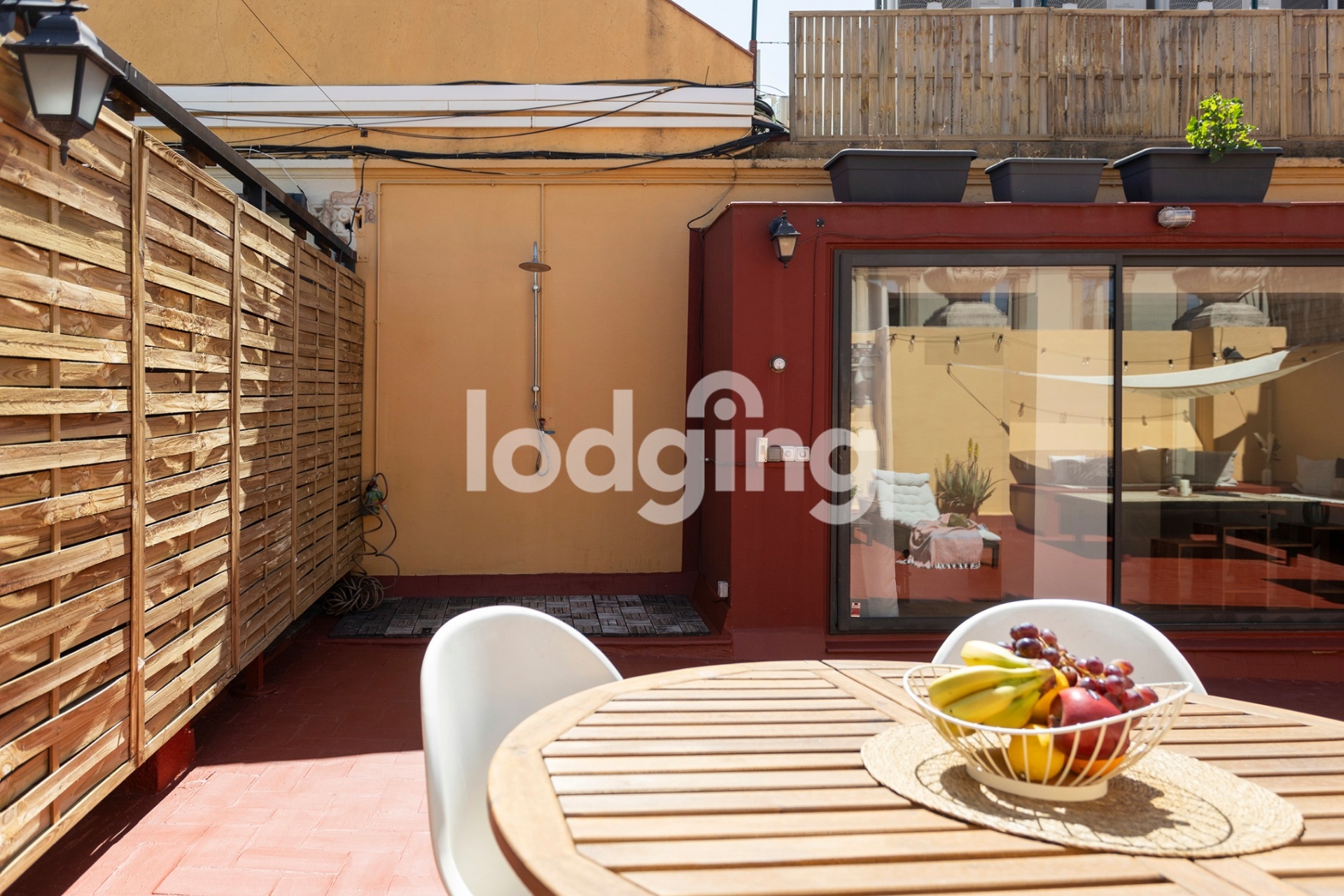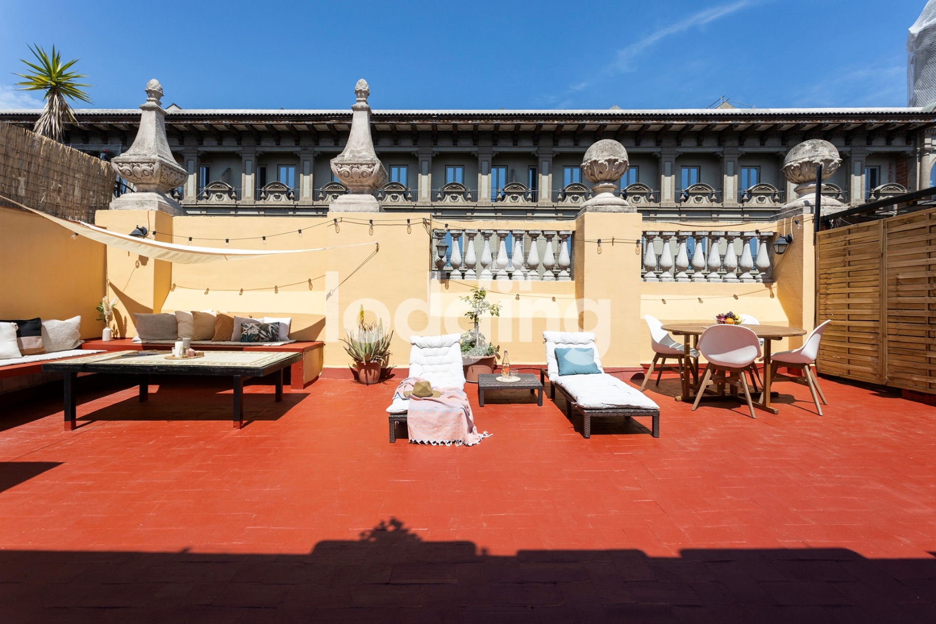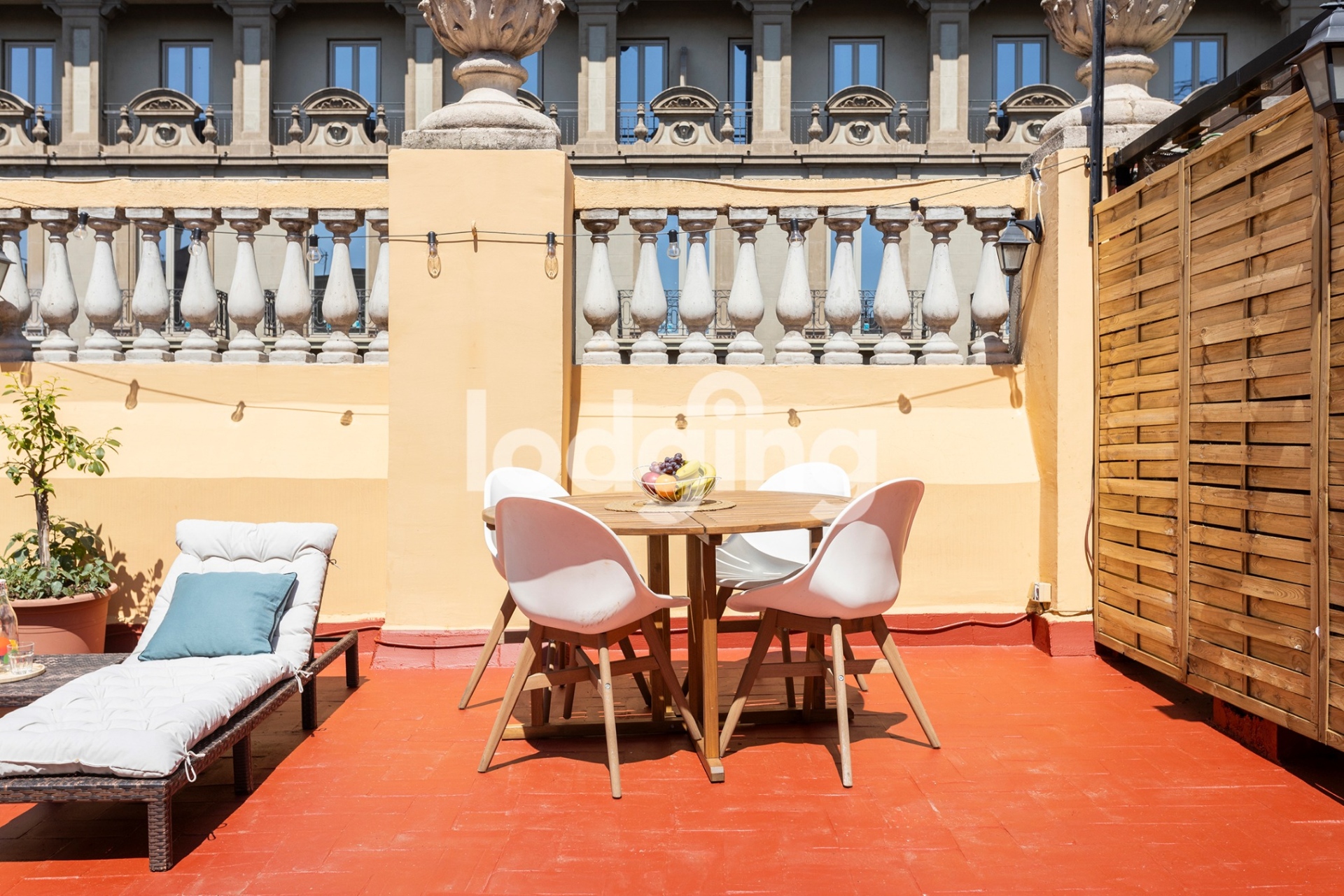 Et quelle terrasse... 60 m² de bonheur, orientée plein sud, meublée et baignée de soleil. Un vrai petit havre de paix zen en pleine ville : chaises longues, douche extérieure, rangements et une table parfaite pour savourer un vermouth. La chambre double, avec salle de bain privative, est un espace spacieux et reposant avec de grands placards intégrés et une salle d’eau moderne avec douche à l’italienne — parfaite pour se ressourcer avant une nouvelle journée dans la capitale catalane. Car depuis Layetana Penthouse, tout Barcelone est à vos pieds. Peu importe la direction que vous prenez en sortant : à droite, le port, les bars à tapas et les plages ; à gauche, les Ramblas, le centre médiéval chargé d’histoire, ou encore le Born avec ses boutiques de créateurs et musées. Et tout droit ? Plaça Catalunya, le cœur névralgique et commercial de la ville. Depuis Layetana Penthouse, il n’y a pas de mauvais choix.