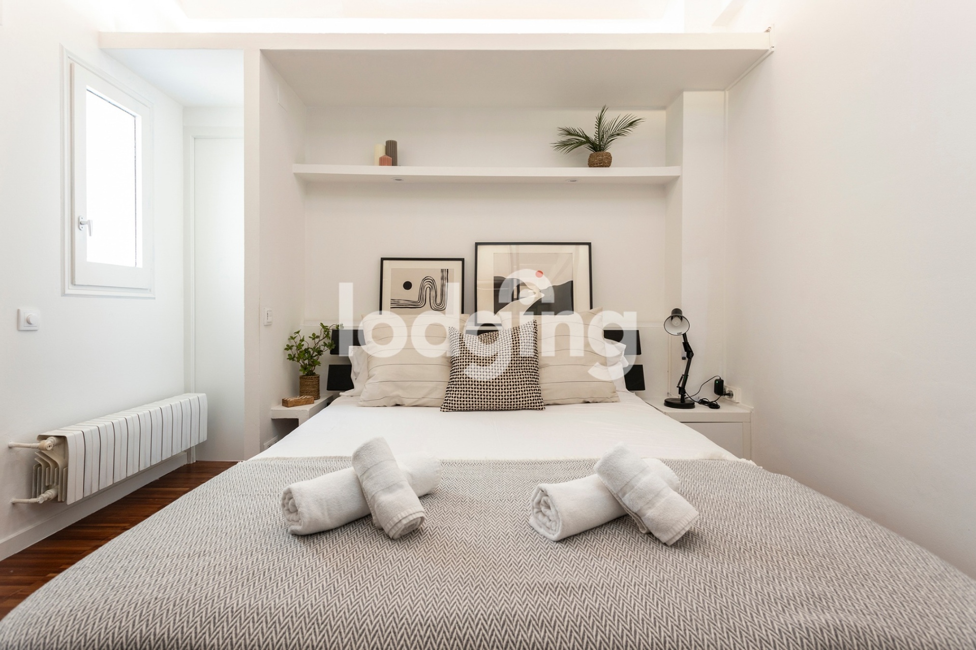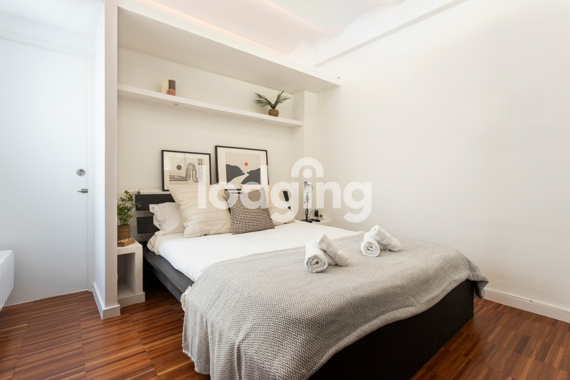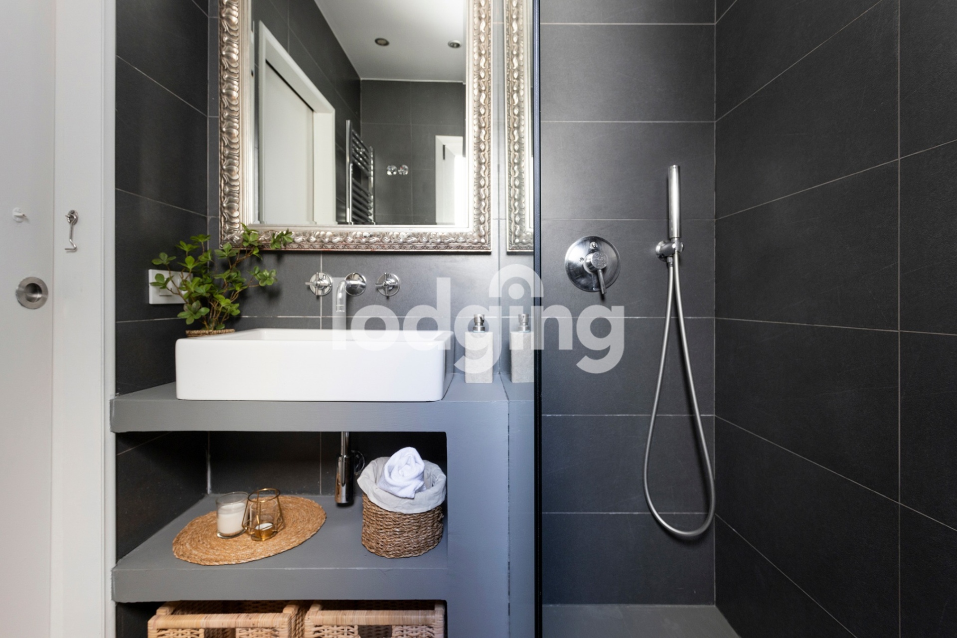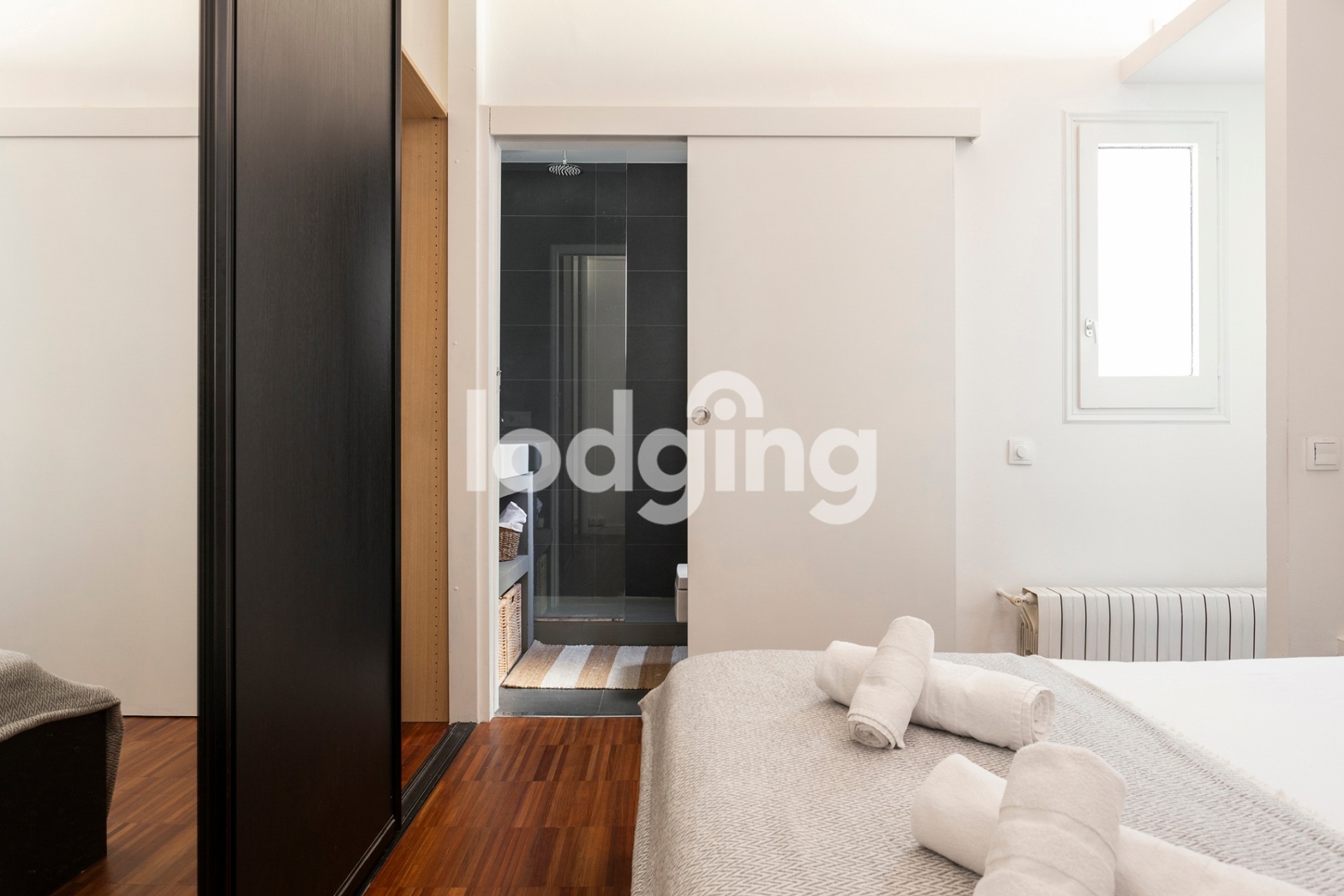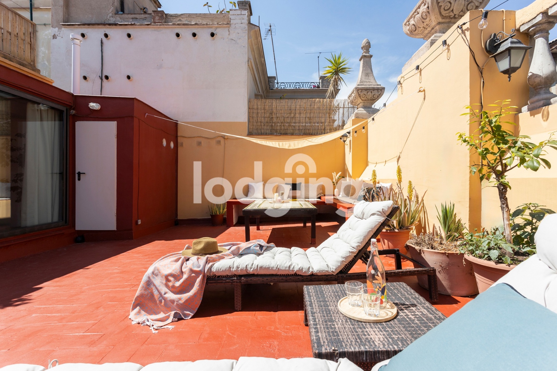 Et quelle terrasse... 60 m² de bonheur, orientée plein sud, meublée et baignée de soleil. Un vrai petit havre de paix zen en pleine ville : chaises longues, douche extérieure, rangements et une table parfaite pour savourer un vermouth. La chambre double, avec salle de bain privative, est un espace spacieux et reposant avec de grands placards intégrés et une salle d’eau moderne avec douche à l’italienne — parfaite pour se ressourcer avant une nouvelle journée dans la capitale catalane. Car depuis Layetana Penthouse, tout Barcelone est à vos pieds. Peu importe la direction que vous prenez en sortant : à droite, le port, les bars à tapas et les plages ; à gauche, les Ramblas, le centre médiéval chargé d’histoire, ou encore le Born avec ses boutiques de créateurs et musées. Et tout droit ? Plaça Catalunya, le cœur névralgique et commercial de la ville. Depuis Layetana Penthouse, il n’y a pas de mauvais choix.