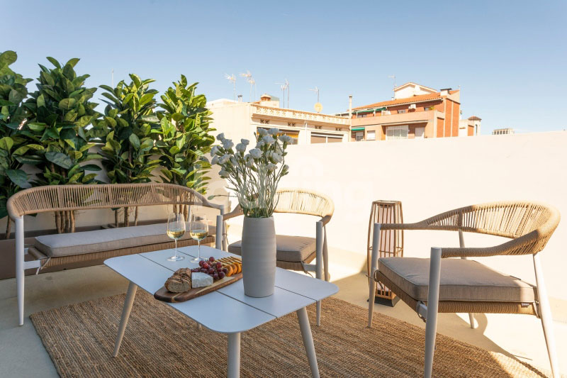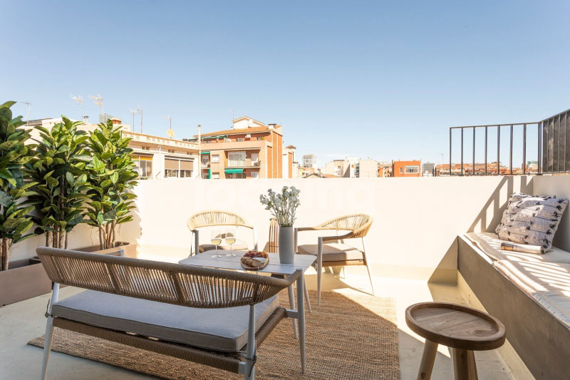 Au bout du salon se trouve une terrasse spectaculaire d'où l'on peut contempler les étoiles dans le ciel de Barcelone la nuit ou prendre un bain de soleil le jour.